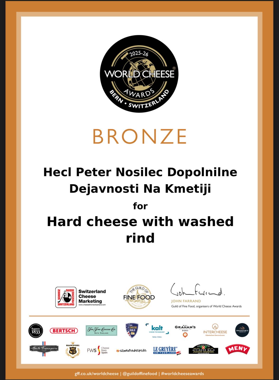 Bronasto priznanje za trdi sir na svetovnem ocenjevanju v Švici